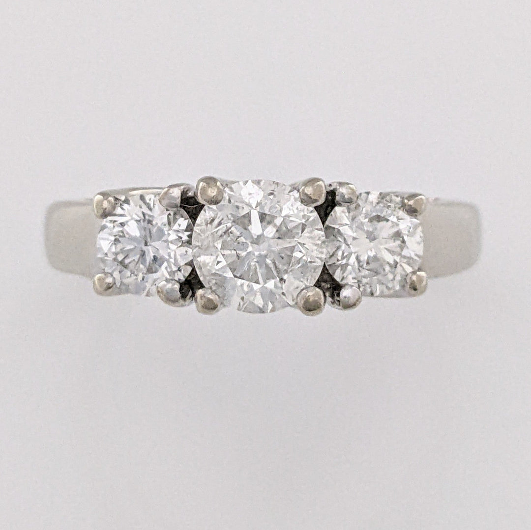 14K WHITE 1.34 CARAT TOTAL WEIGHT I1-I2 H DIAMOND ROUND (3) ESTATE TRINITY RING 4.5 GRAMS