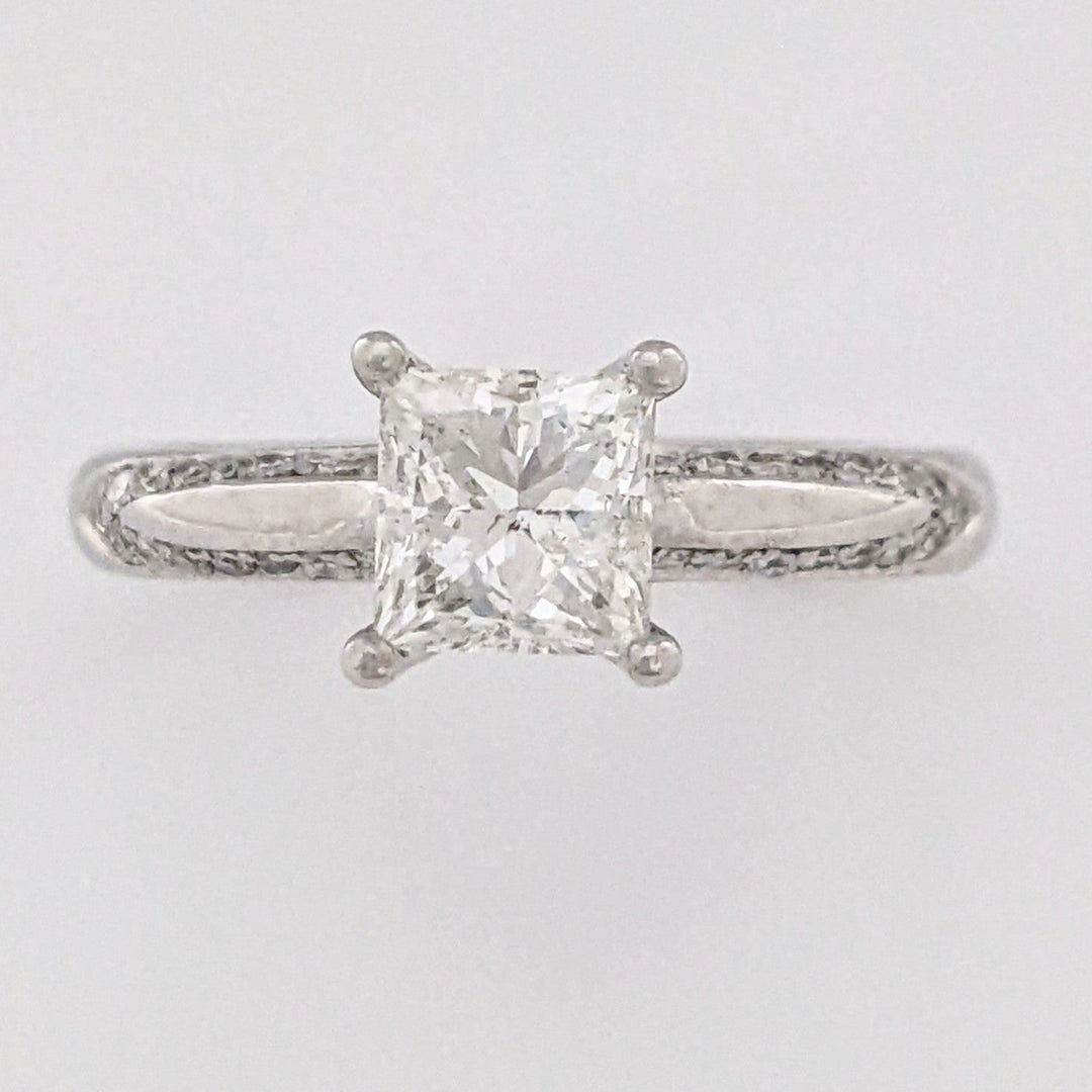 14K WHITE 1.23 CARAT TOTAL WEIGHT I2 H DIAMOND PRINCESS CUT (1) ROUND (34) ESTATE RING 3.9 GRAMS