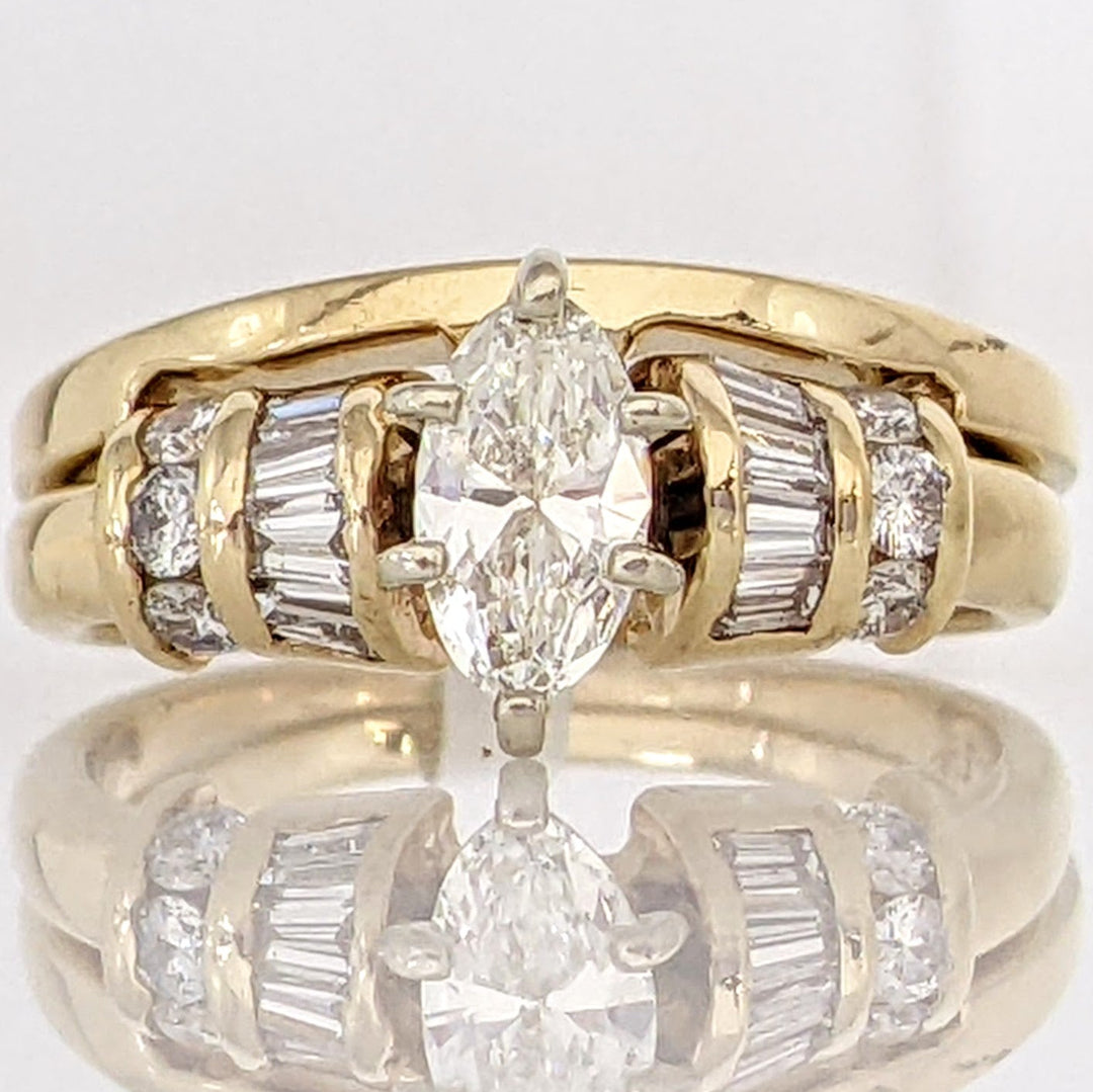14K .71 CARAT TOTAL WEIGHT VS1-SI1 I DIAMOND MARQUISE CUT WITH (8) BAGUETTE CUT AND (6) ROUND DIAMOND ESTATE SET