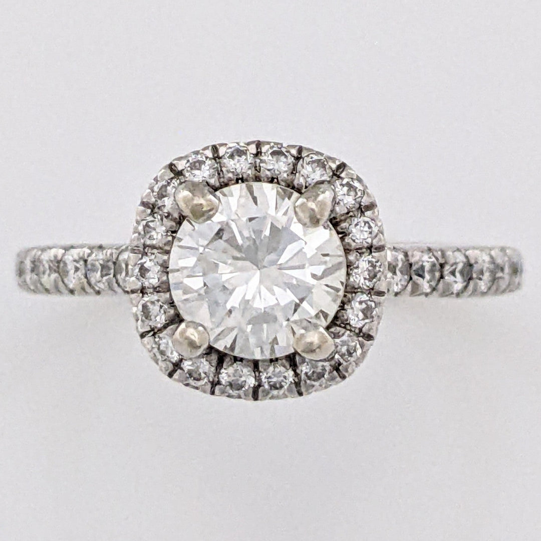 14K WHITE 1.01 CARAT TOTAL WEIGHT VS-SI G-I DIAMOND ROUND (39) ESTATE HALO RING 2.4 GRAMS
