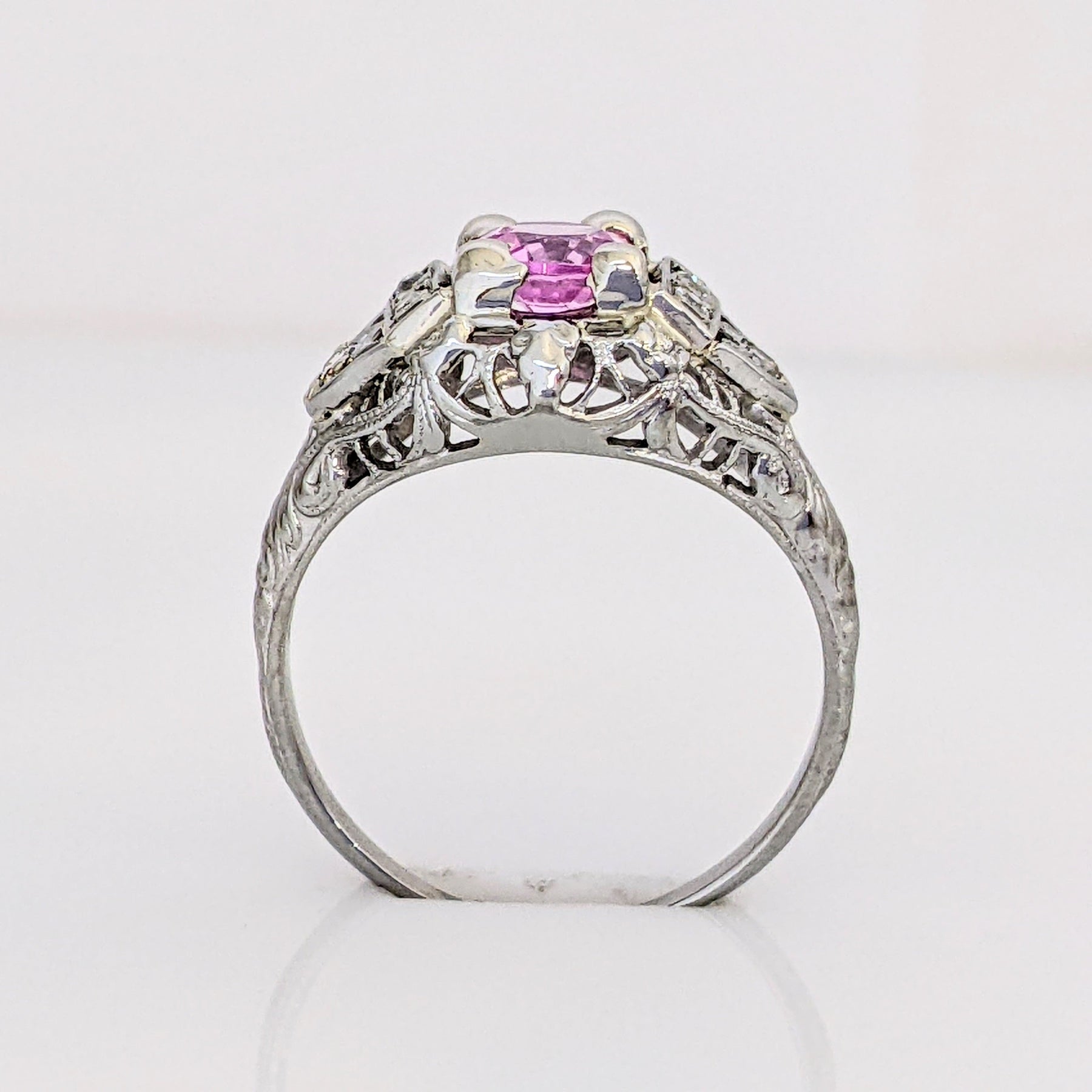 10K WHITE PINK SAPPHIRE ROUND 5.3MM WITH .08 DIAMOND TOTAL WEIGHT VINTAGE ESTATE RING 3.2 GRAMS