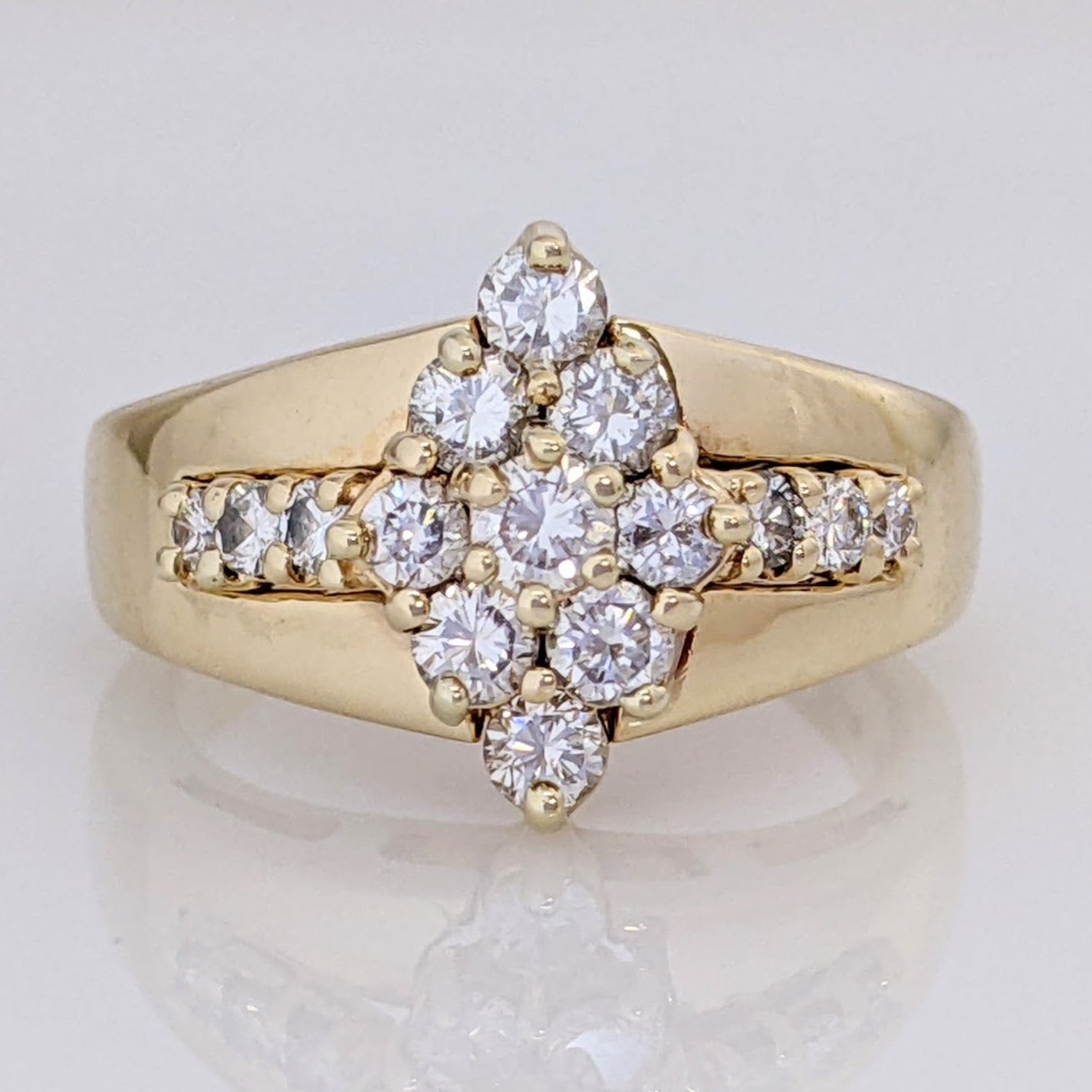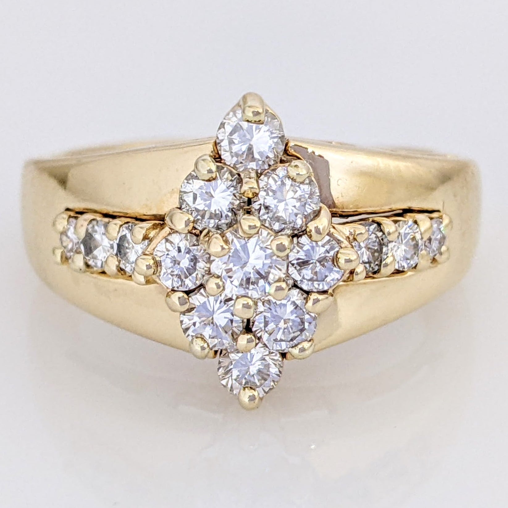 14K 1.02 CARAT TOTAL WEIGHT SI2 J DIAMOND ROUND (15) CLUSTER ESTATE RING 7.6 GRAMS