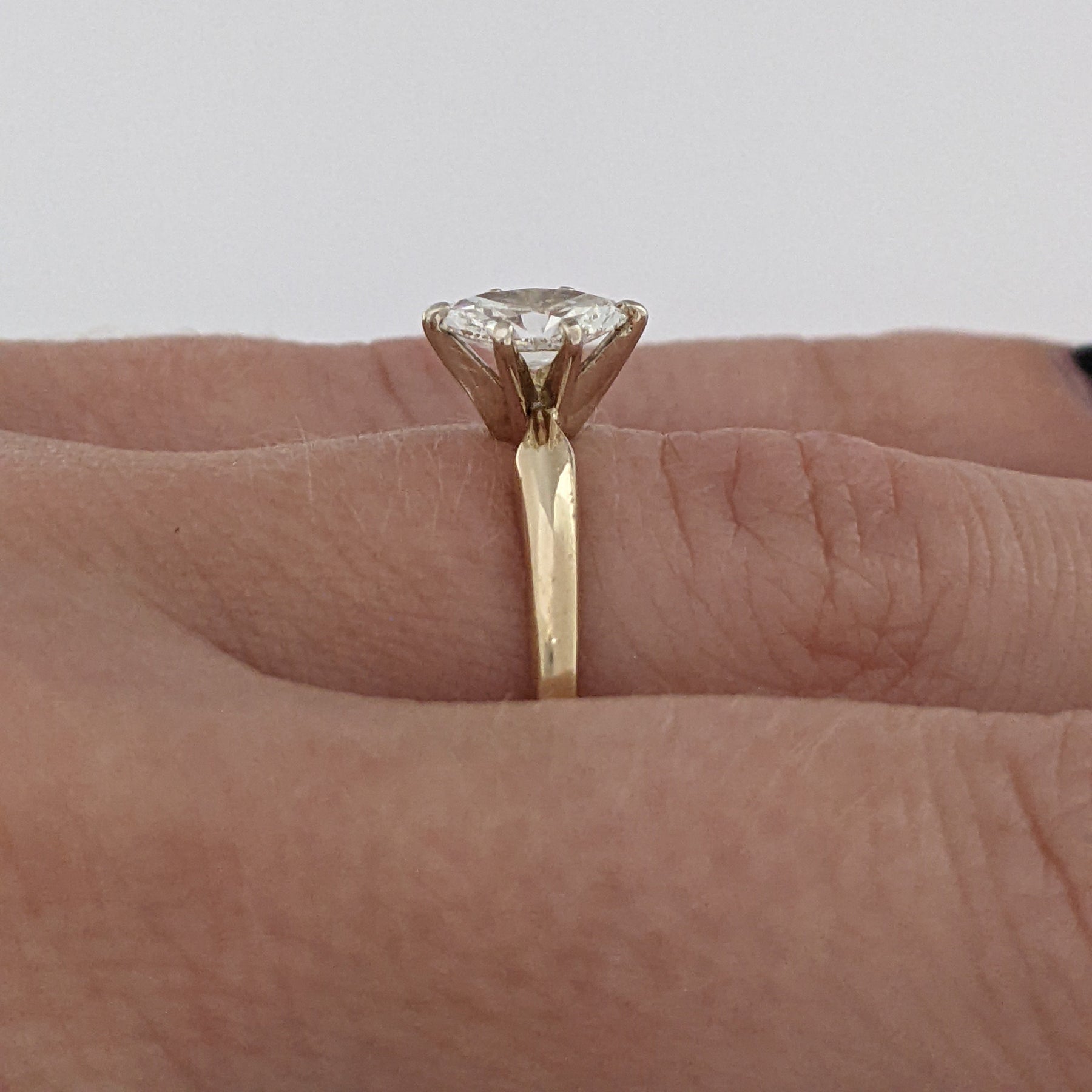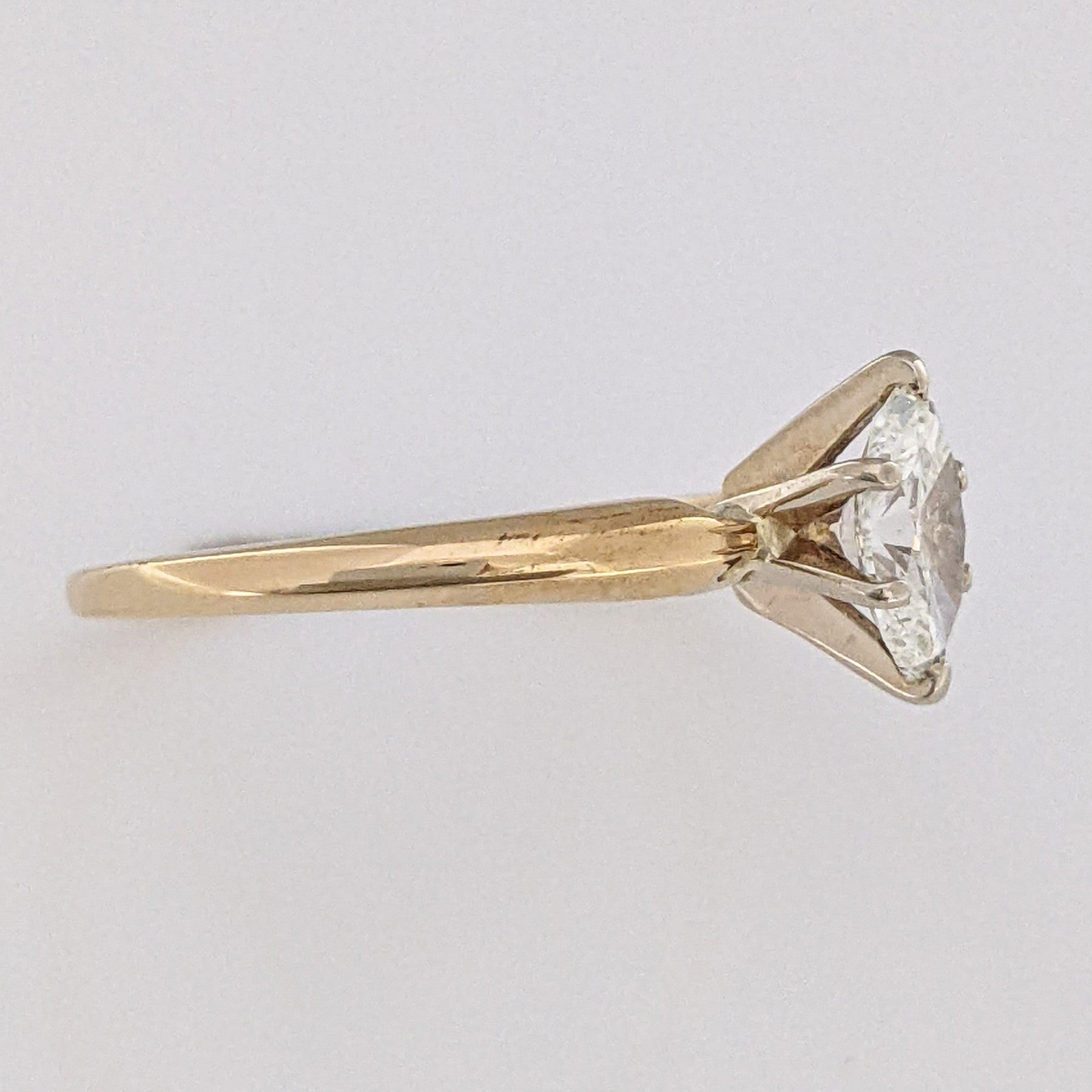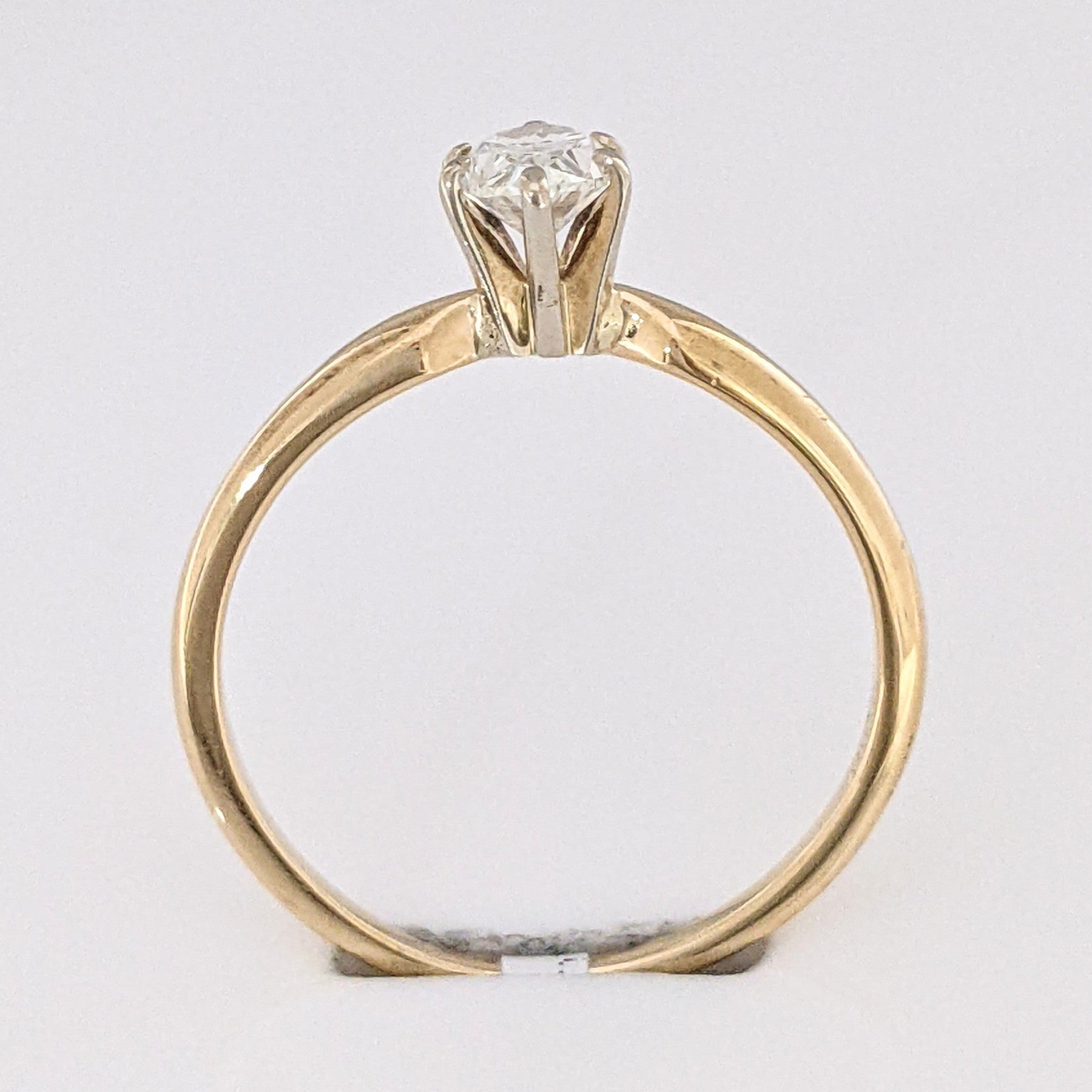 14k .45ct estate diamond solitaire ring. The ring contains one marquise-cut diamond with a color and clarity of SI2 G. The ring weighs 2.0 grams