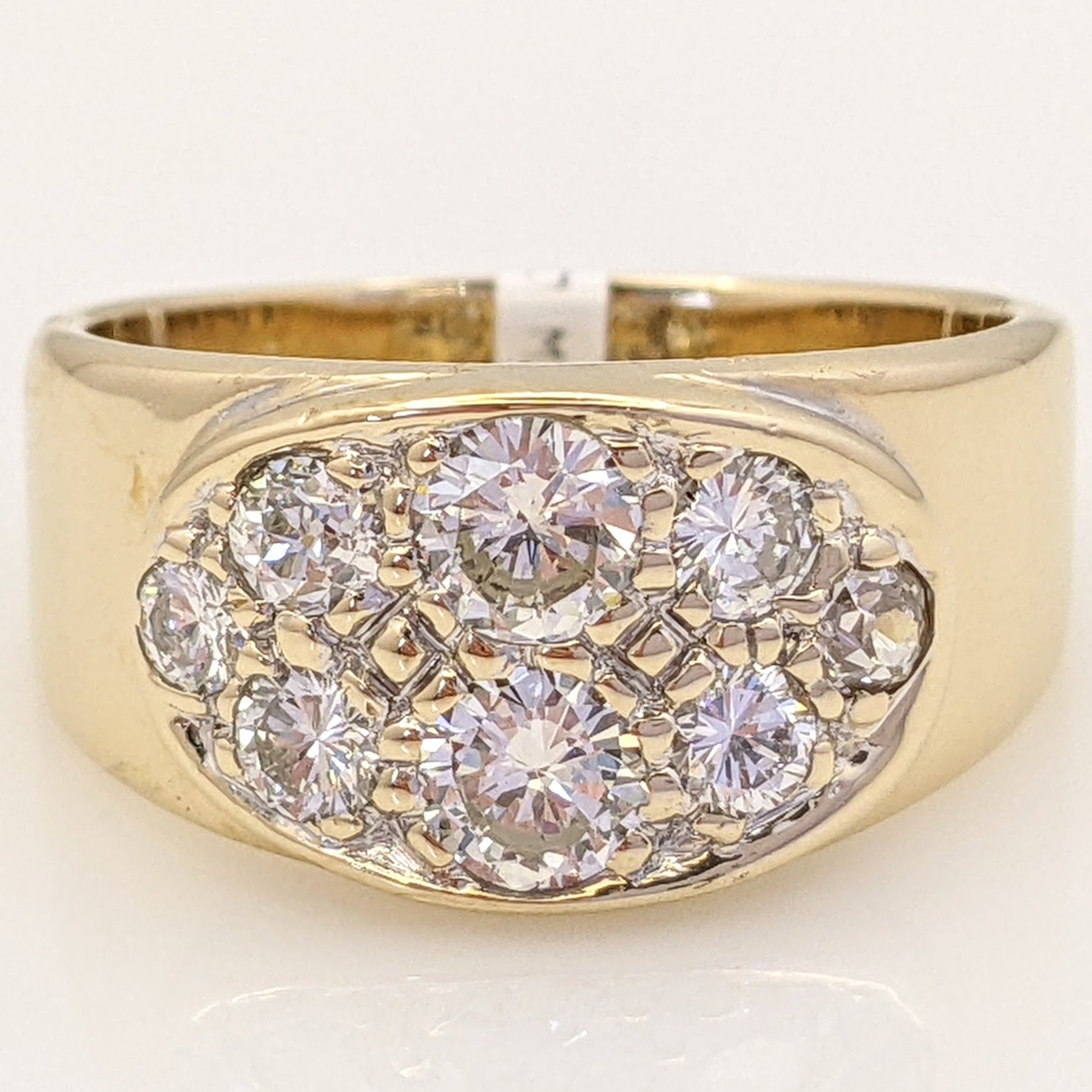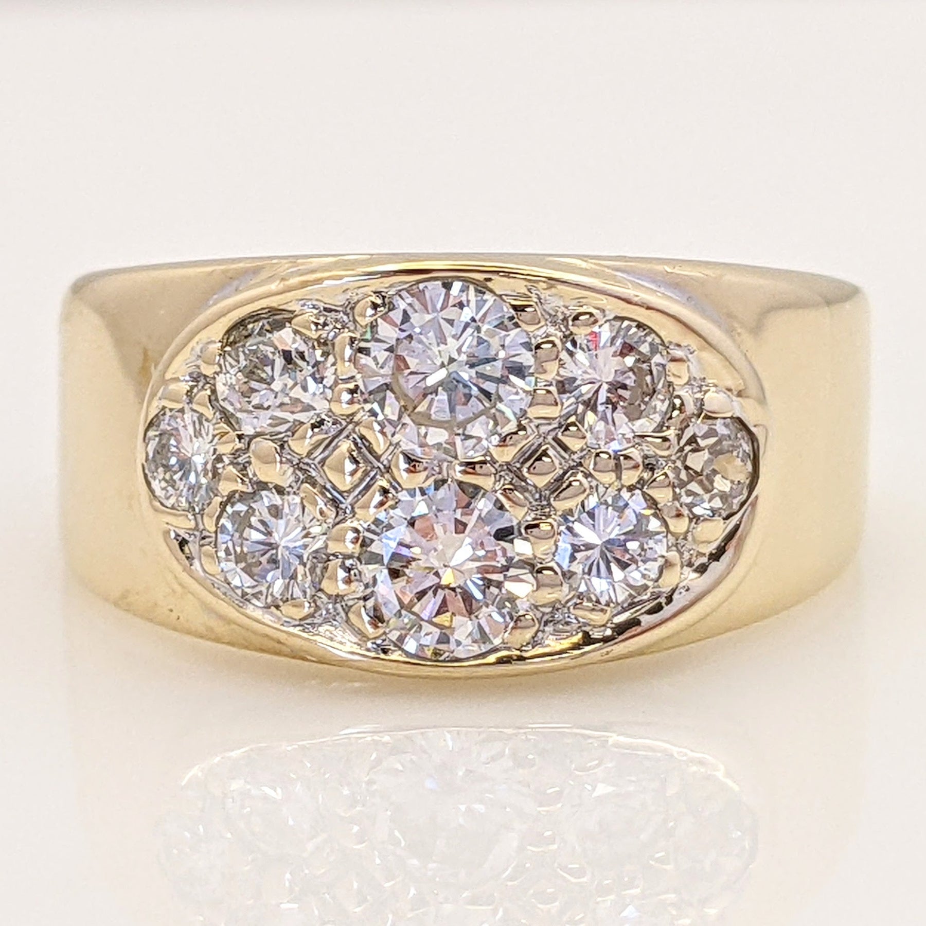 14K .89 CARAT TOTAL WEIGHT SI1 I DIAMOND ROUND (8) OVAL TOP CLUSTER ESTATE RING 8.0 GRAMS