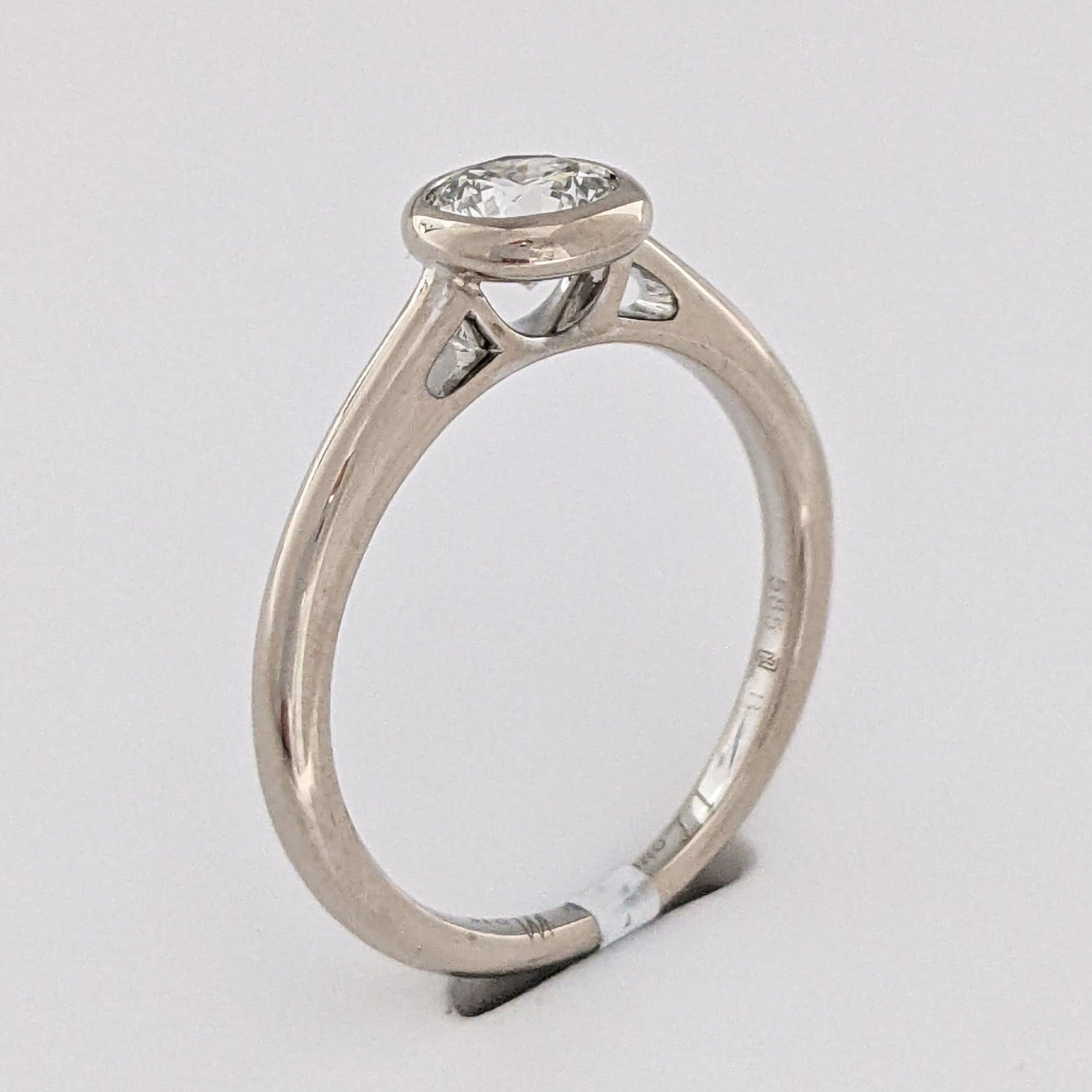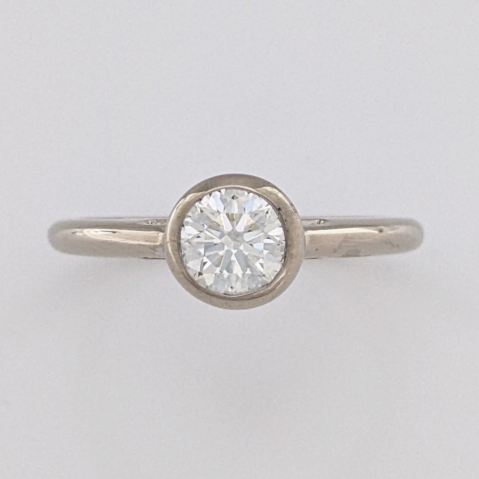 14K WHITE .72 CARAT TOTAL VS2 J DIAMOND ROUND ESTATE BEZEL RING 3.5 GRAMS