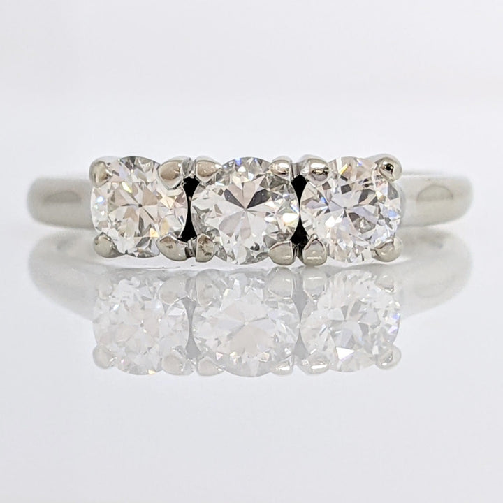14K WHITE .83 CARAT TOTAL WEIGHT VS2 I DIAMOND ROUND (3) EUROPEAN CUT ESTATE RING 2.9 GRAMS