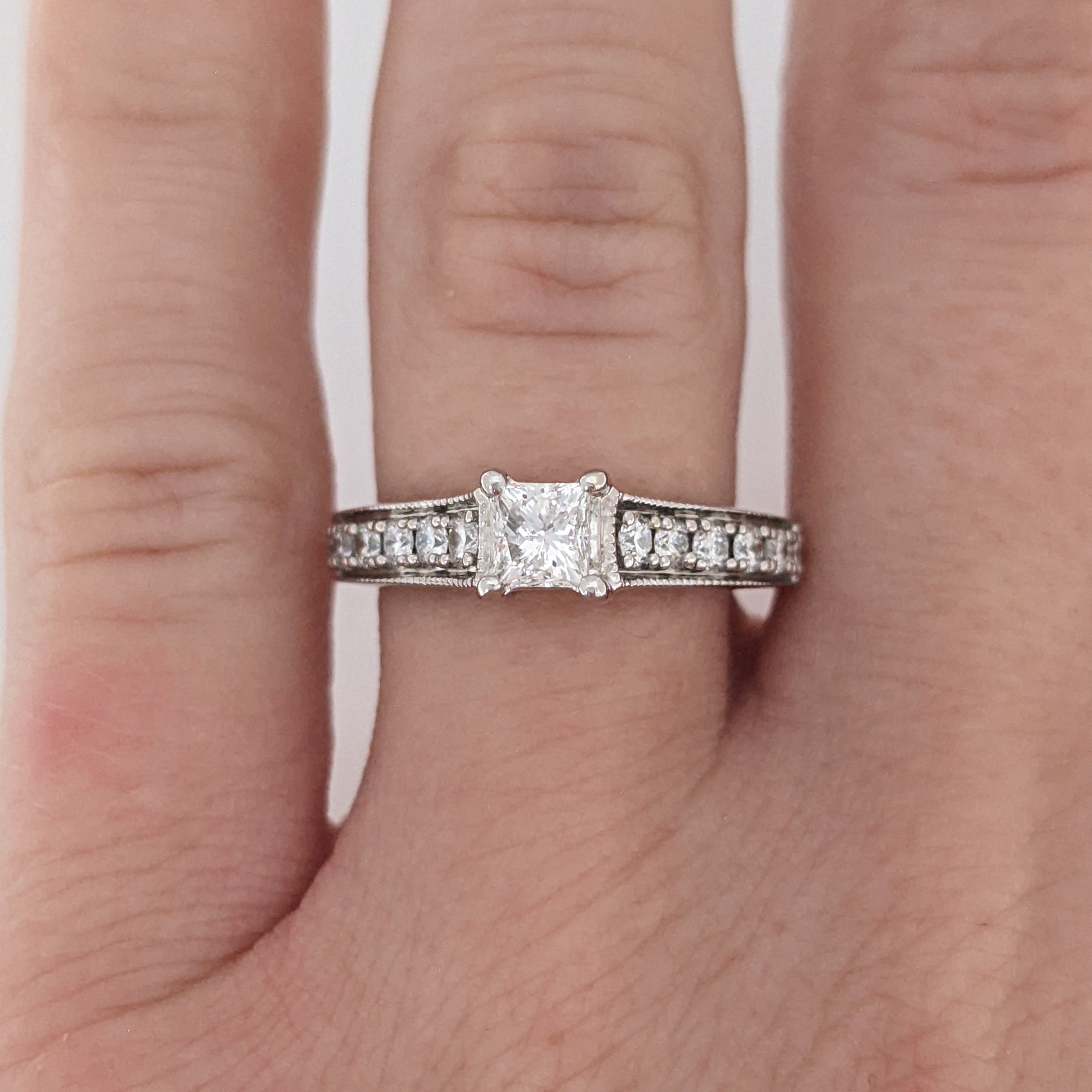 14K WHITE .99 CARAT TOTAL WEIGHT I1 G DIAMOND PRINCESS CUT (9) ESTATE RING 3.7 GRAMS