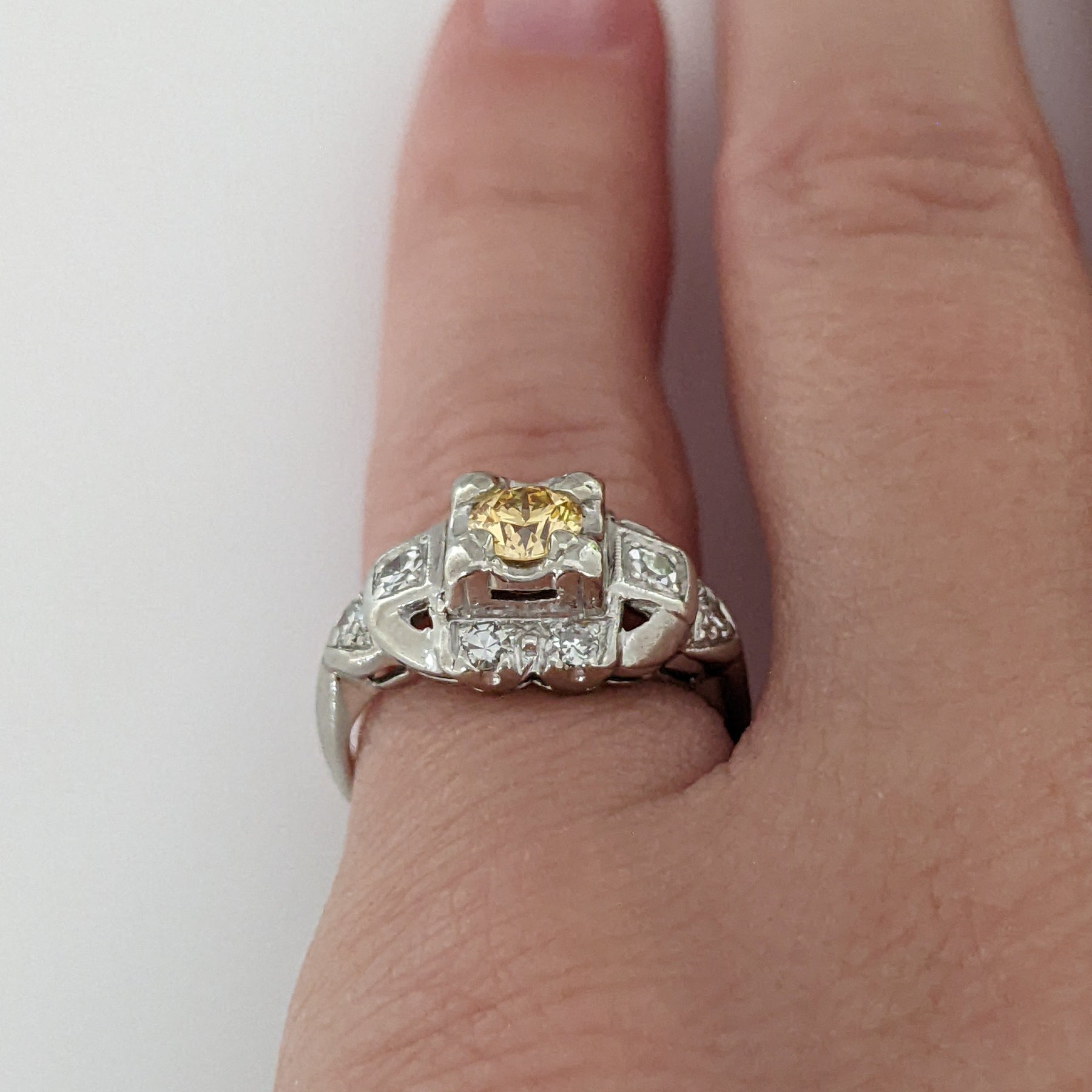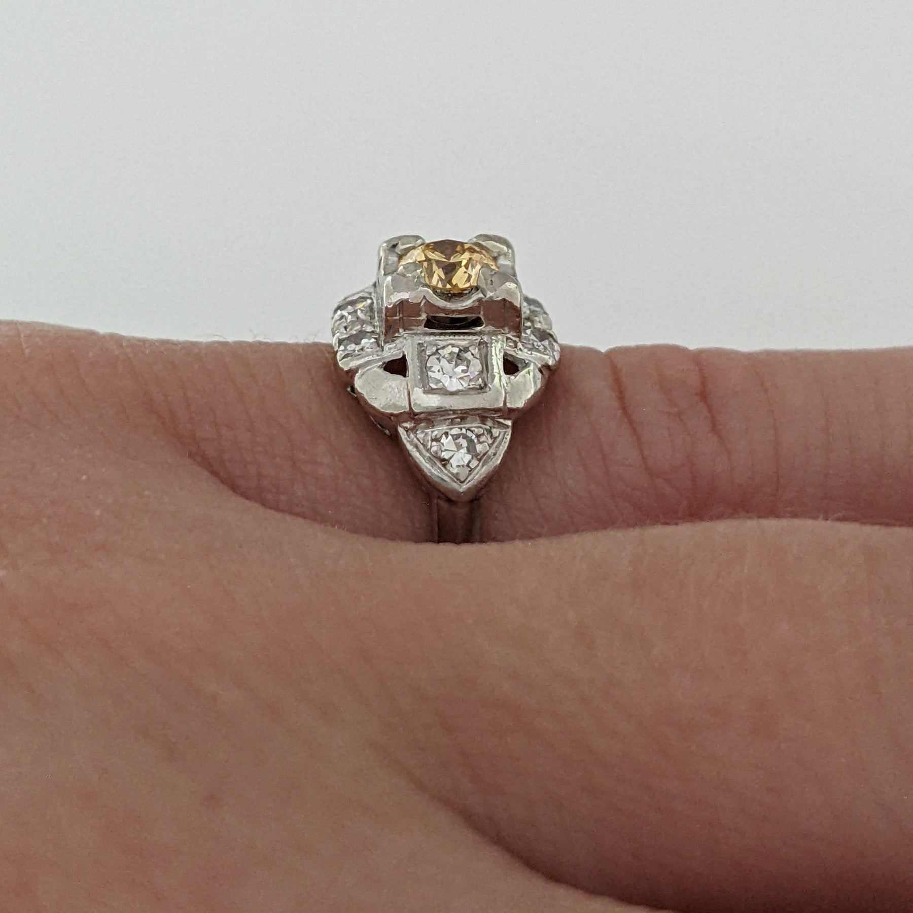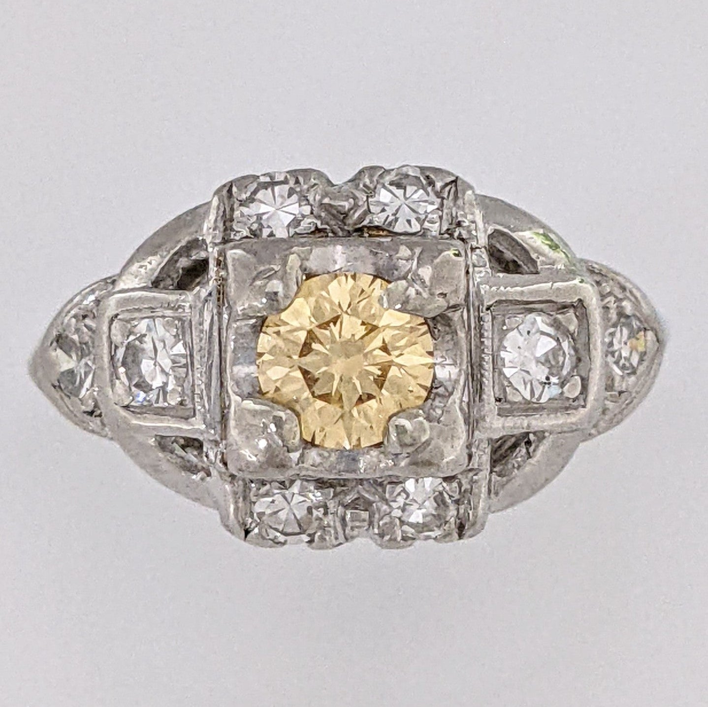 PLATINUM .56 CARAT TOTAL WEIGHT SI1-VS2 H/ YELLOW ESTATE RING 3.5 GRAMS