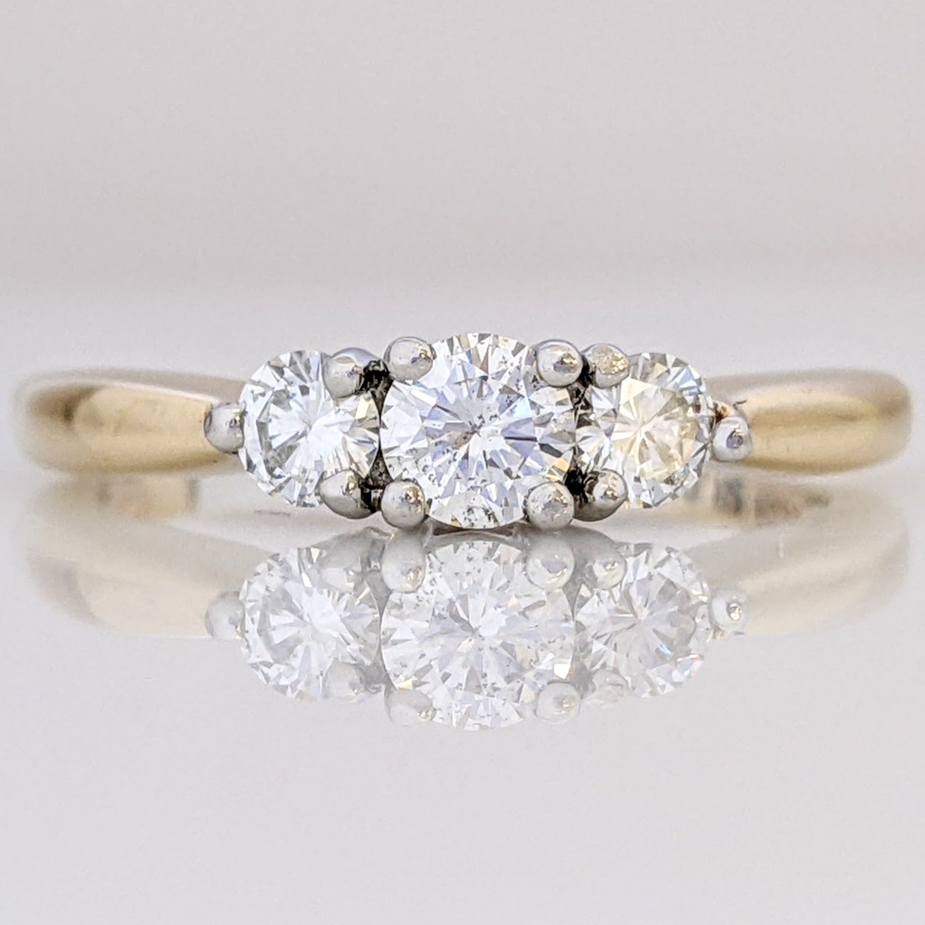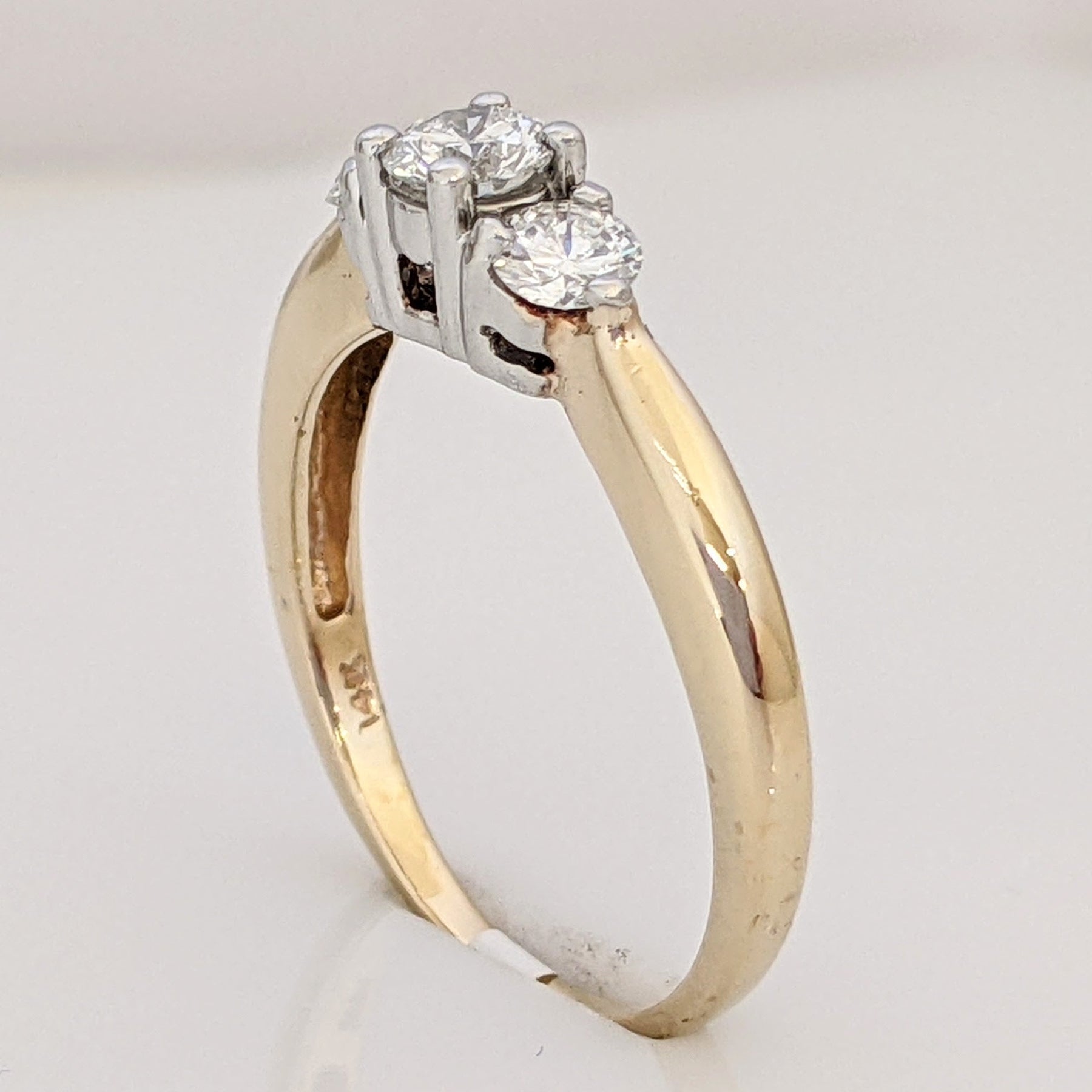 14K .48 CARAT TOTAL WEIGHT SI2-I1 G-H DIAMOND ROUND TRINITY ESTATE RING 2.7 GRAMS