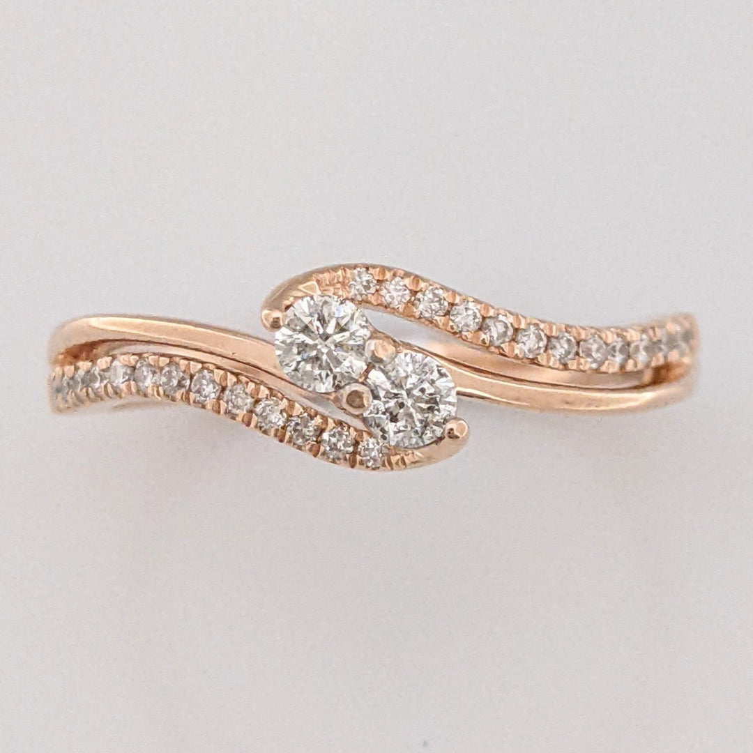 10K ROSE .36 CARAT TOTAL WEIGHT I1 H DIAMOND ROUND (28) BYPASS ESTATE RING 2.9 GRAMS