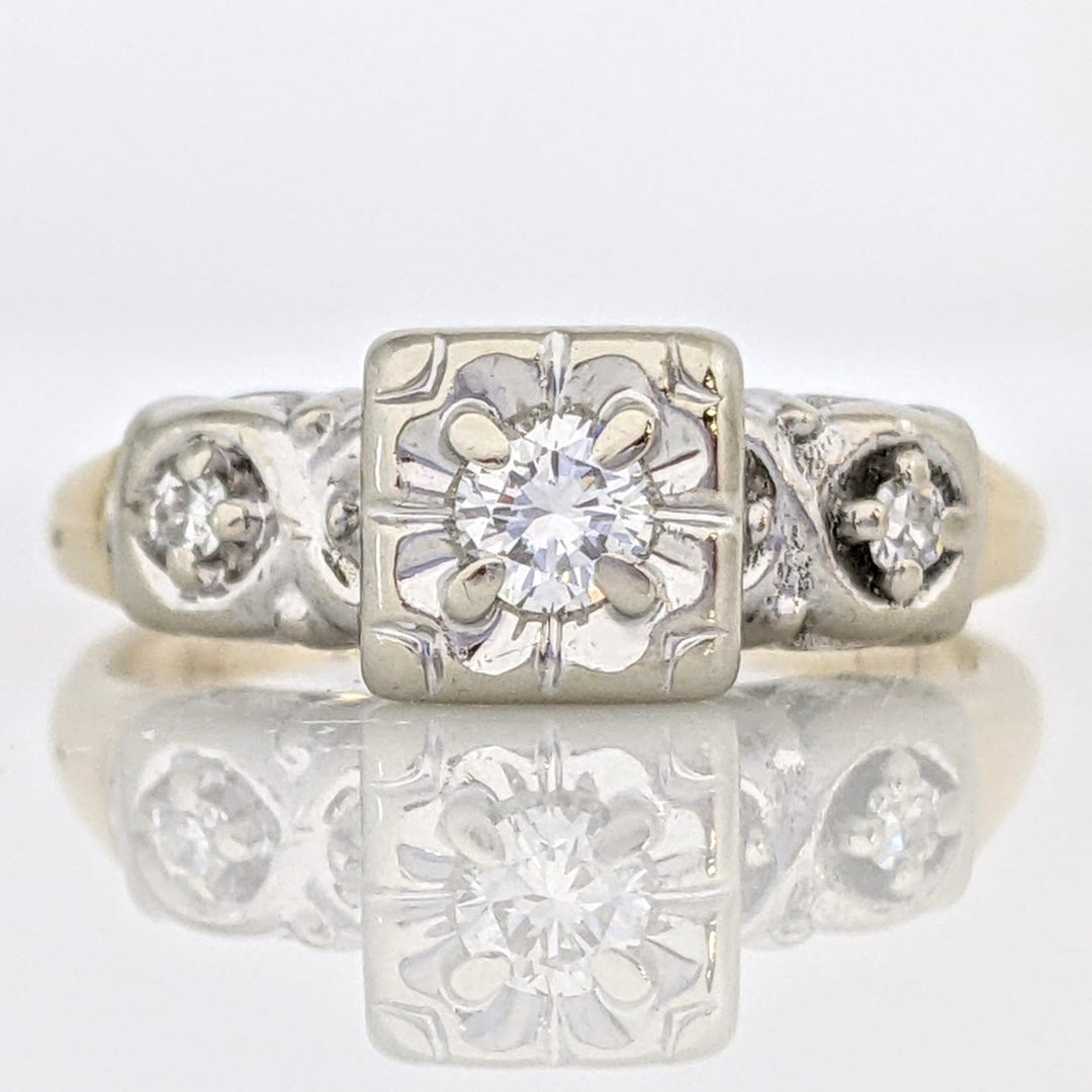 14K TWO-TONE .16 CARAT TOTAL WEIGHT VS2 G ROUND DIAMOND (3) ILLUSION BOXHEAD ESTATE RING