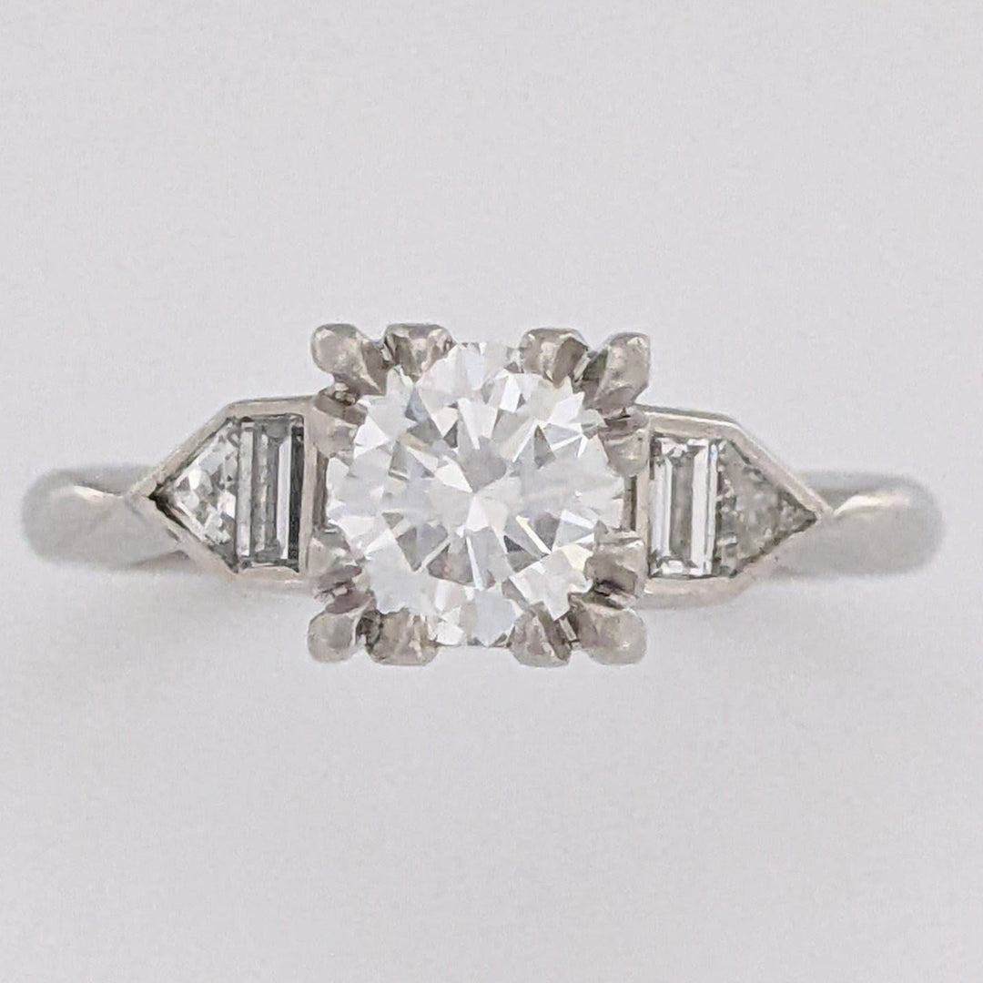 PLATINUM 1.01 CARAT TOTAL WEIGHT VS2 H DIAMOND ROUND (1) BAGUETTE (2) TRILLION (2) ESTATE RING 5.8 GRAMS