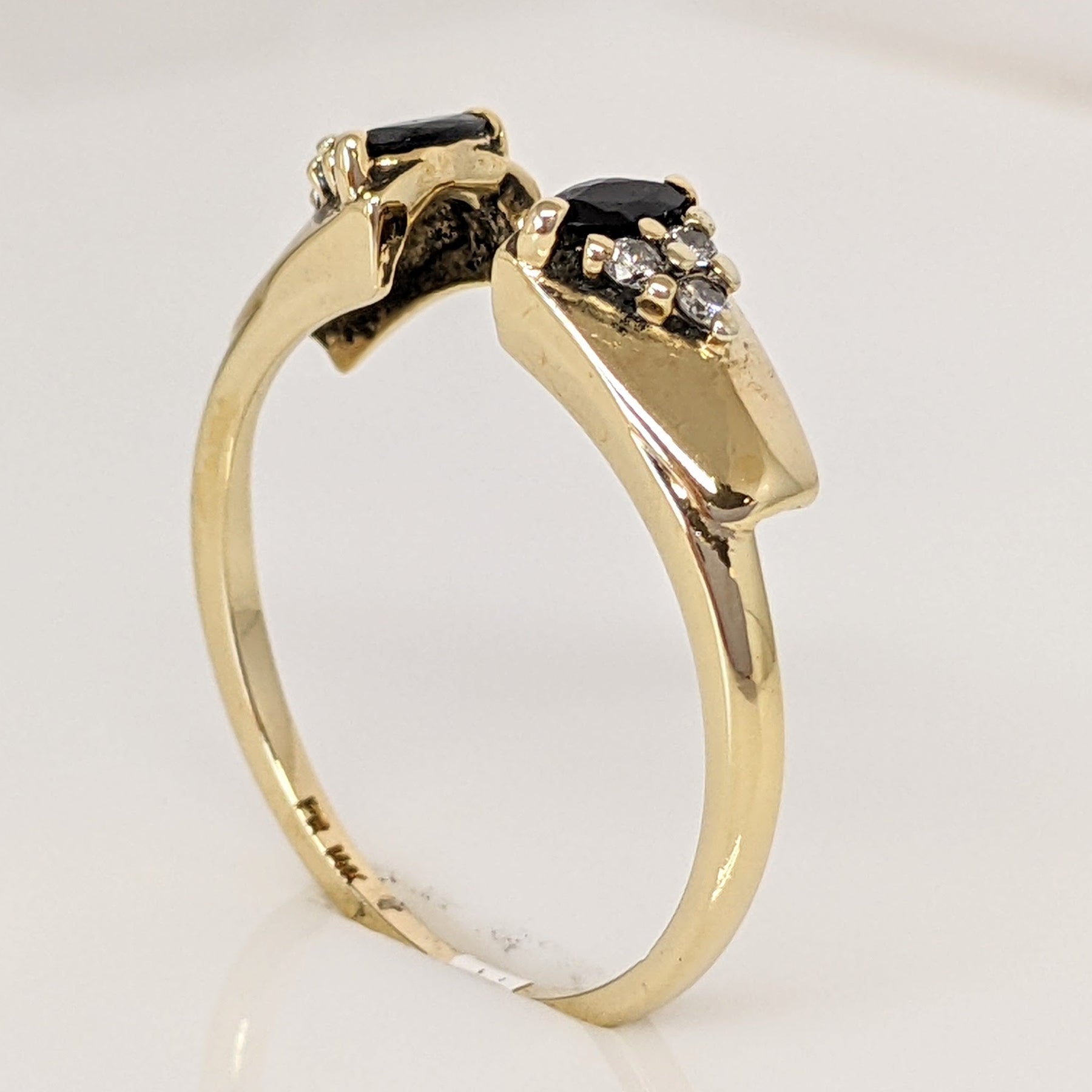 14K SAPPHIRE MARQUISE (2) 2X4 WITH (6) MELEE ESTATE RING 2.4 GRAMS