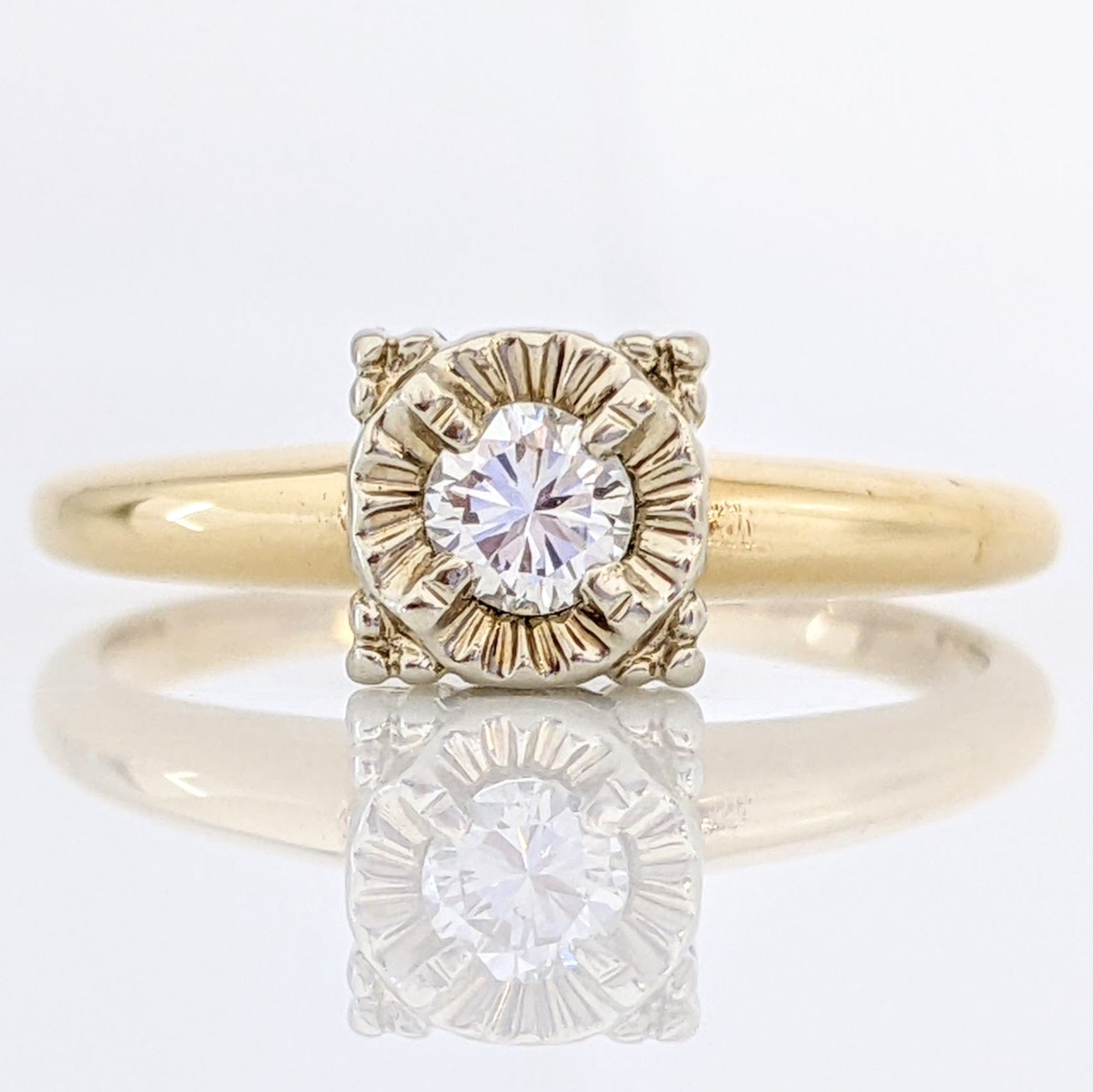 14K .16 CARAT TOTAL SI1 G ROUND DIAMOND BOXHEAD ILLUSION SOLITAIRE ESTATE RING 2.6 GRAMS