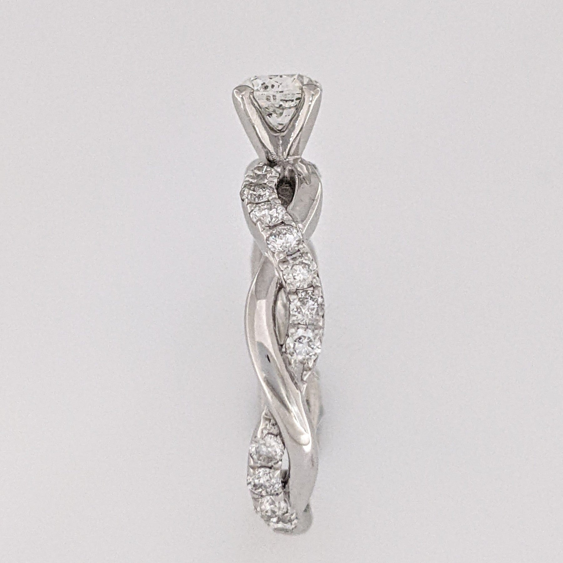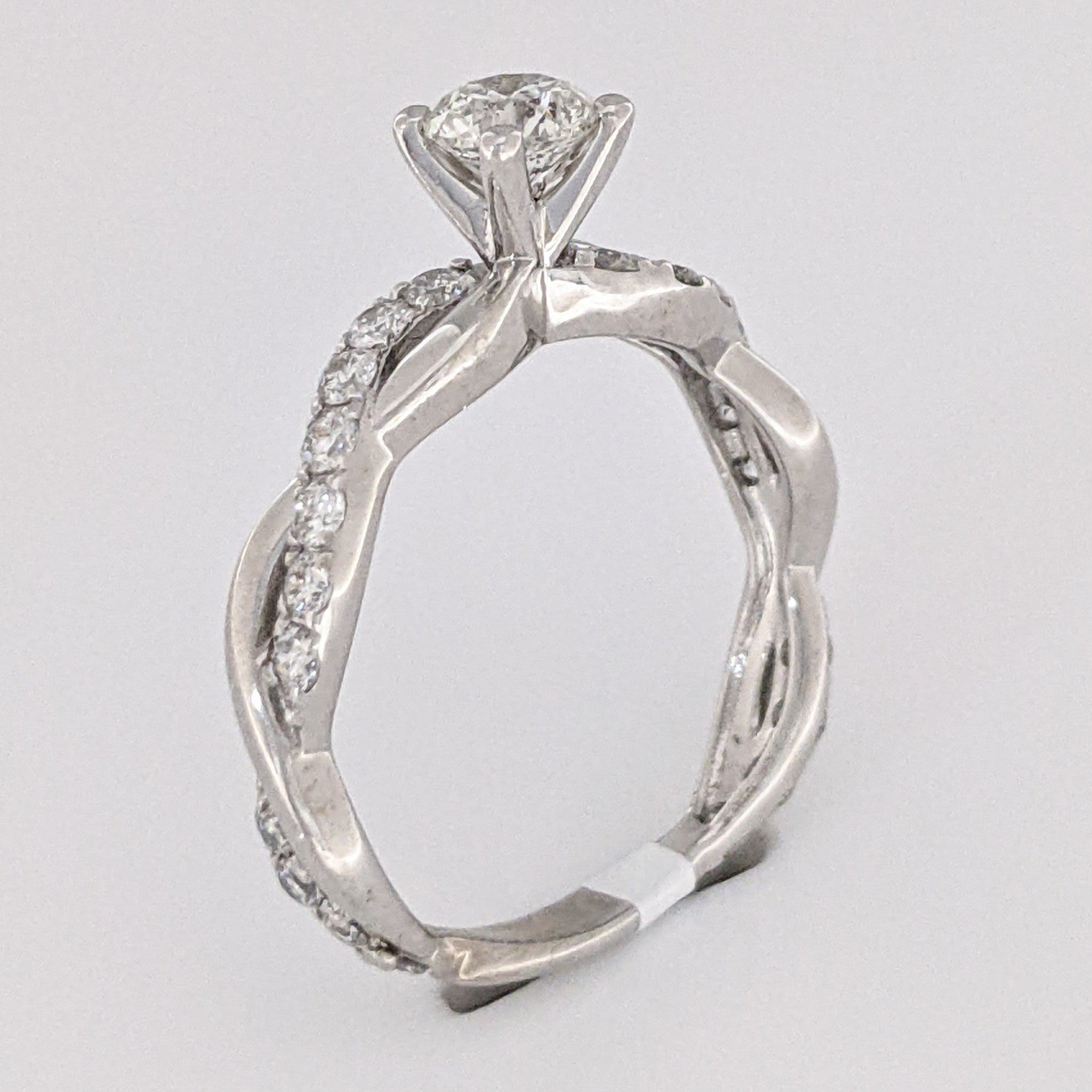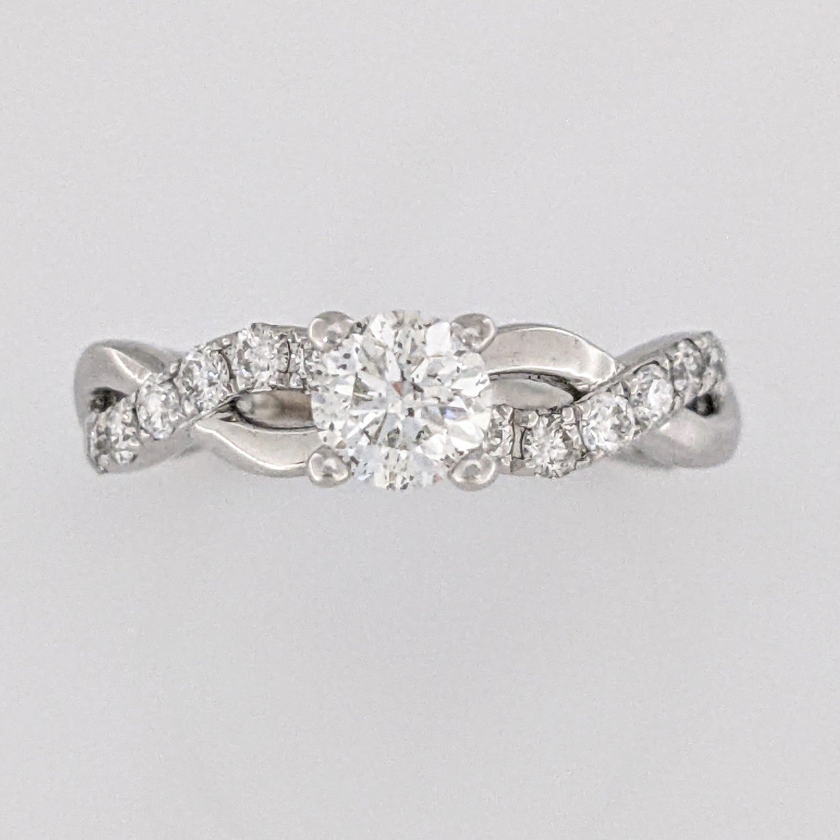 This classic estate ring is crafted from 14KW gold and features a beautiful 1.17 carat total weight I1 J diamond in an elegant twist shank design, weighing in at just 2.3 grams. A timeless design for memorable occasions.