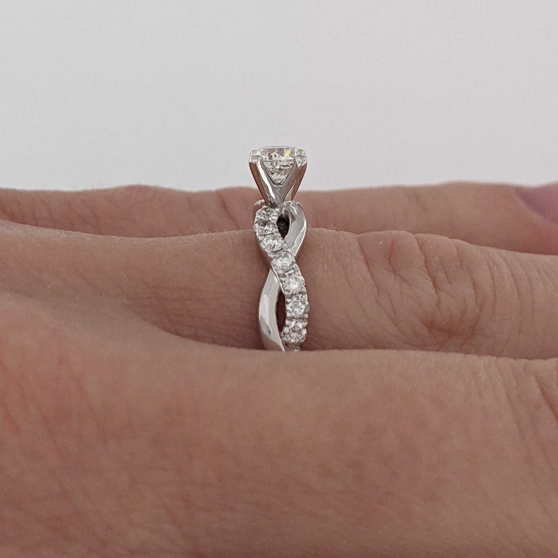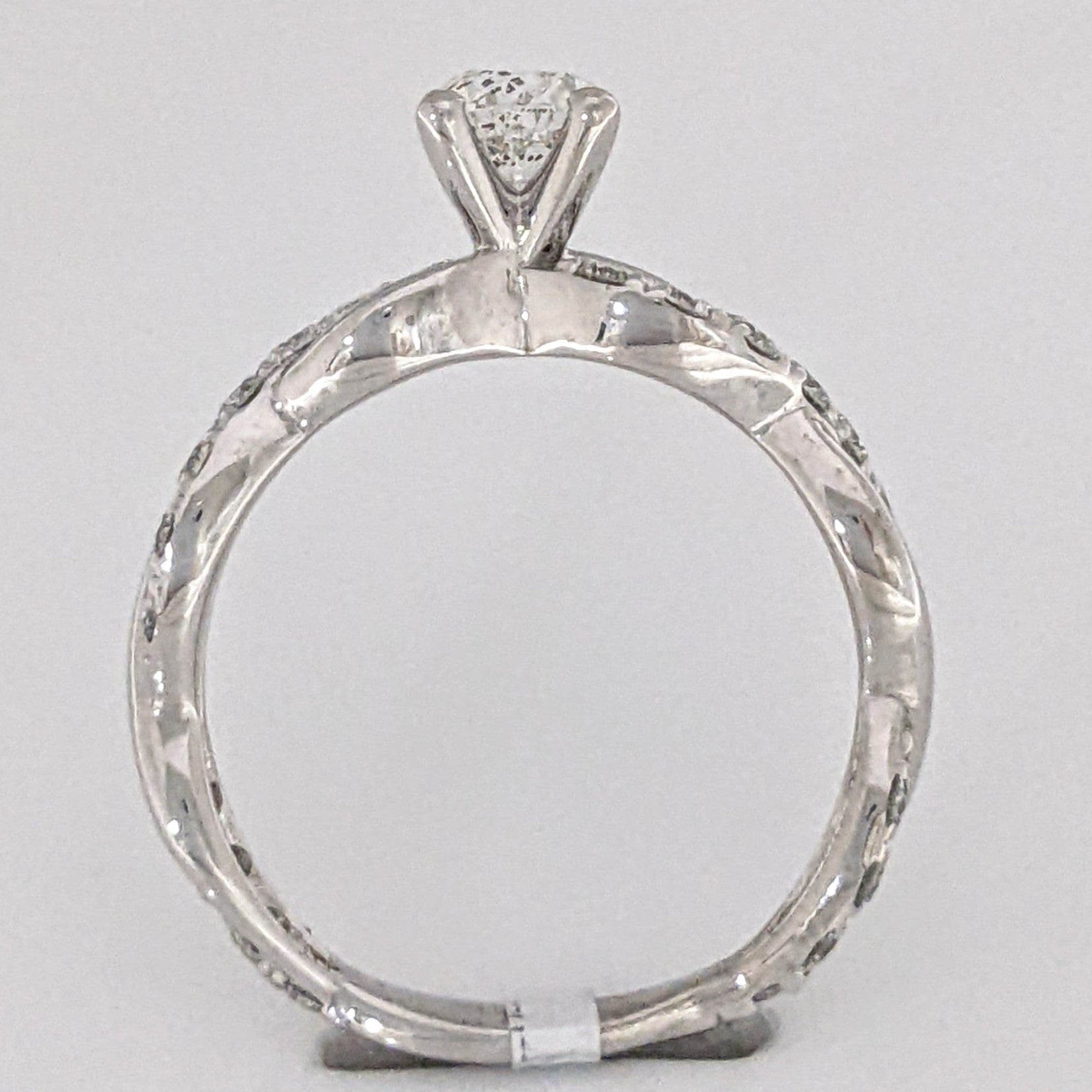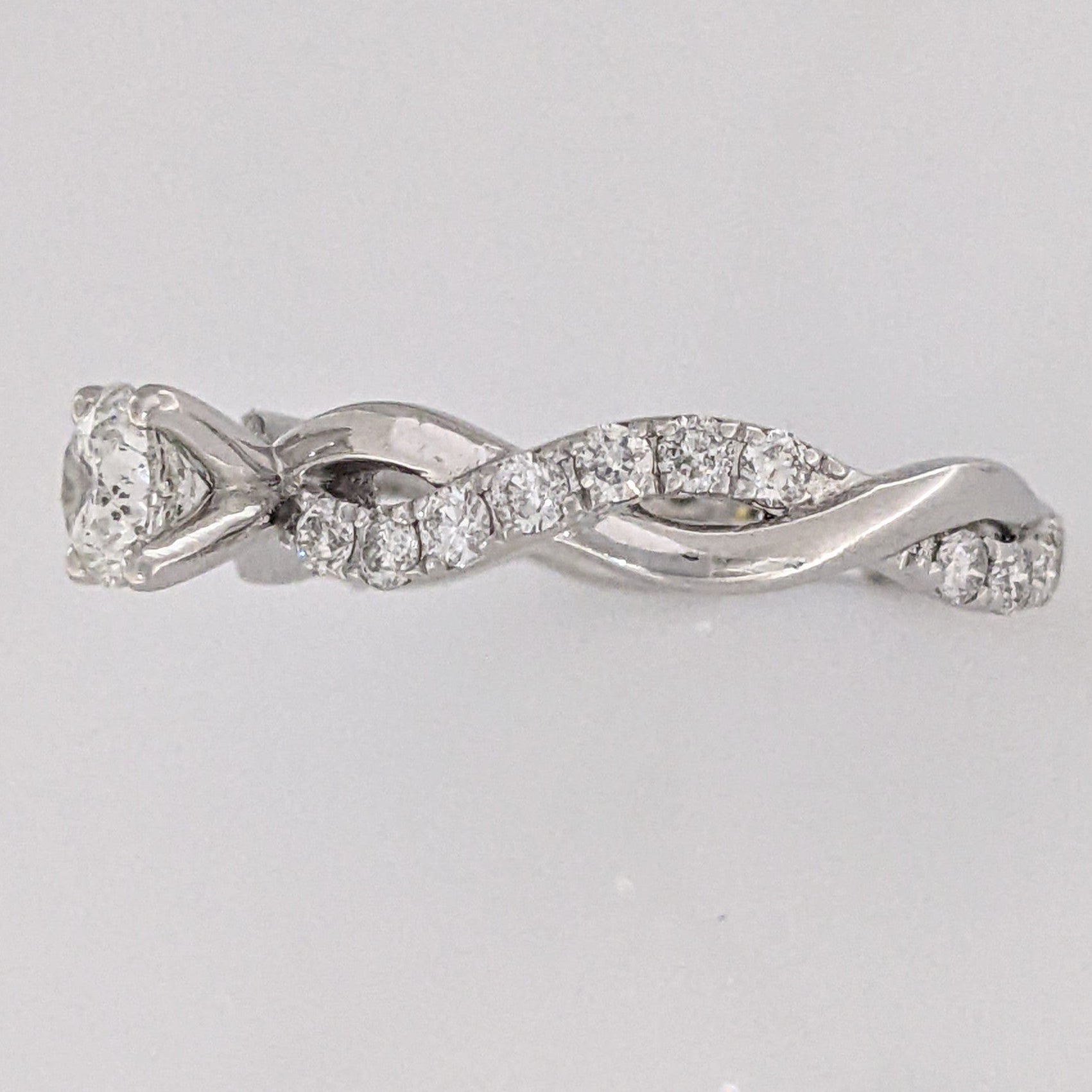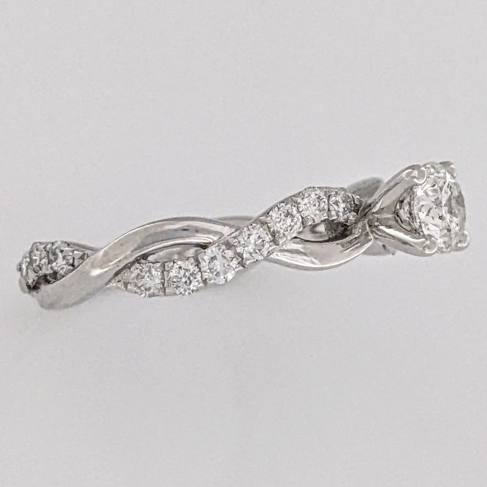 This classic estate ring is crafted from 14KW gold and features a beautiful 1.17 carat total weight I1 J diamond in an elegant twist shank design, weighing in at just 2.3 grams. A timeless design for memorable occasions.