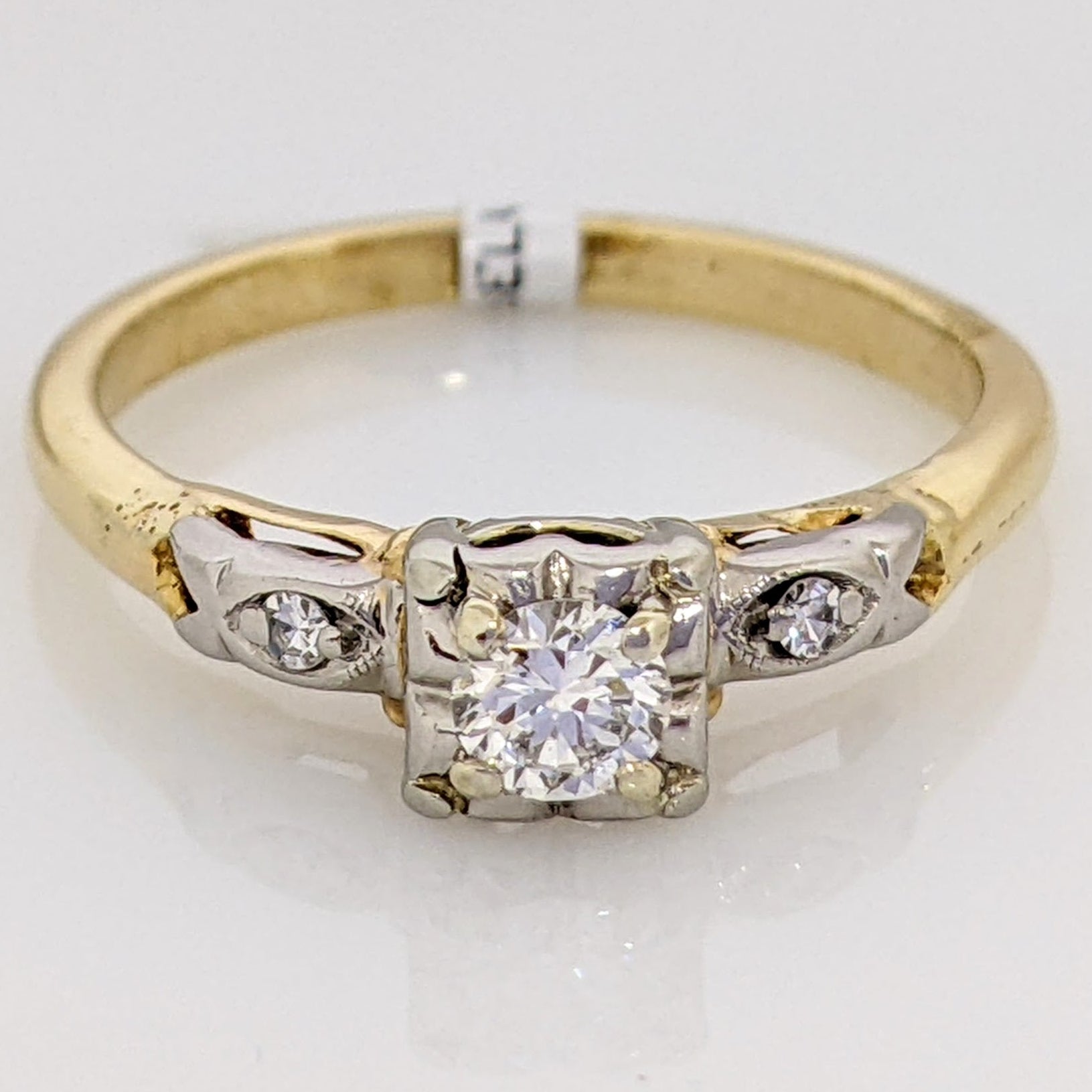 14K .18 CARAT TOTAL WEIGHT SI2 H DIAMOND ROUND (3) VINTAGE SOLITAIRE ESTATE RING 1.8 GRAMS