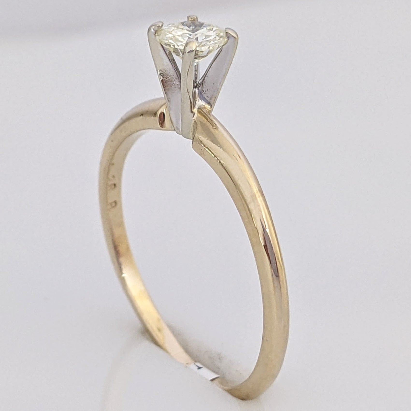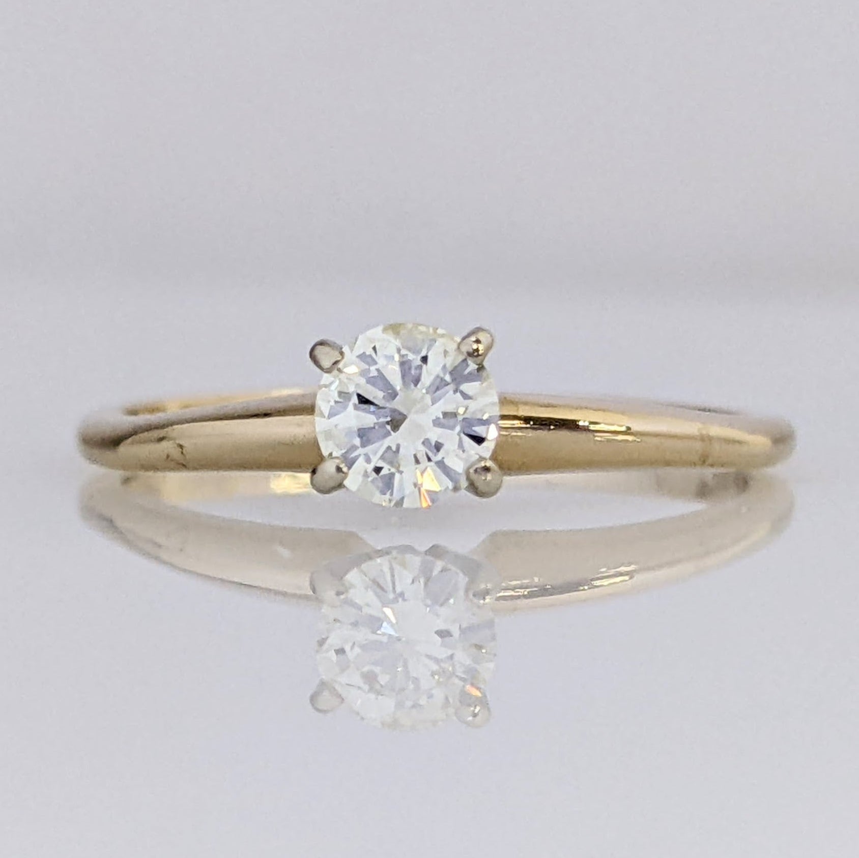 This elegant 14K ring is expertly crafted with a total of 0.26 carats of I1 natural diamonds, set in a round-cut solitaire style. It weighs a total of 1.7 grams, making it an ideal accessory for special occasions.