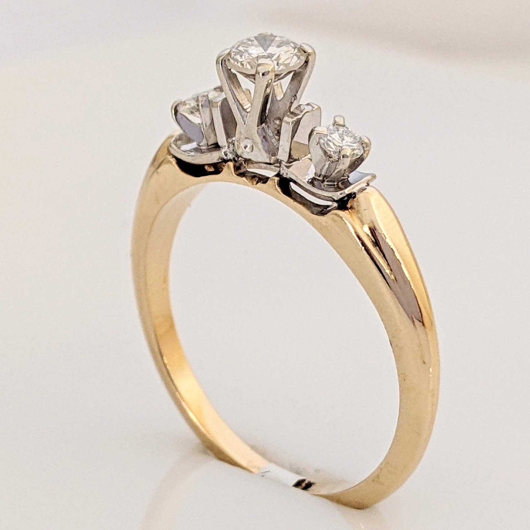 14K .33 CARAT TOTAL WEIGHT VS2 H DIAMOND ROUND (3) TRINITY ESTATE RING 2.9 GRAMS