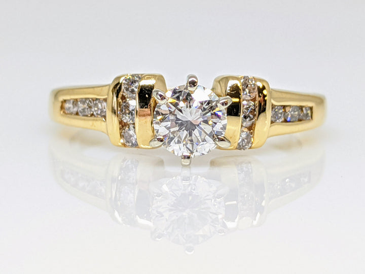 This 14K gold estate ring features 13 round diamonds, totaling .60 carats with an SI-J rating. Crafted from 3.3 grams of luxurious gold, this classic ring is perfect for special occasions.